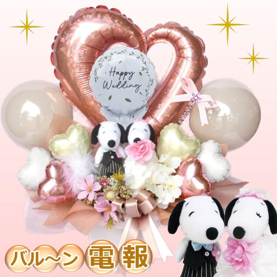 ウェディングドールバルーン電報 和風 結婚式 スヌーピー ぬいぐるみ 祝電 花車 バルーン ギフト 造花 送料無料 花模様 Hanamoyou プレゼント ギフトのギフトモール